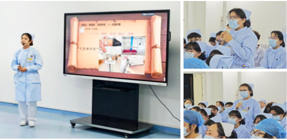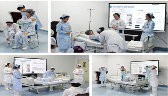 术后护理是本次查房的重点。通过情景设置,护理团队现场展示了SBAR标准化交接、胸腔闭式引流管护理、血栓预防及早期下床活动等并将分级护理制度的落实贯穿其中。模拟患者出现管路滑脱的应急预案,以及不良事件的上报流程。通过对学生的提问以及现场生动的情景模拟,生动的诠释了“以患者为中心”的护理理念和快速康复外科(ERAS)精髓。