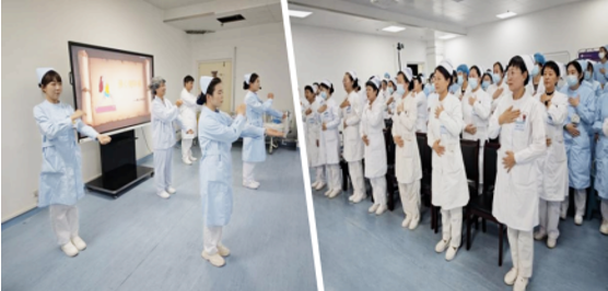 为增强护理人员的康复指导能力,胸心外科护理团队自创“强心健肺操”,融合呼吸训练与肢体活动,旨在帮助患者改善肺功能、增强心肺耐力。护理人员通过现场学习与演示,掌握了这一实用的康复技能,为术后患者康复提供了更多元化的支持。